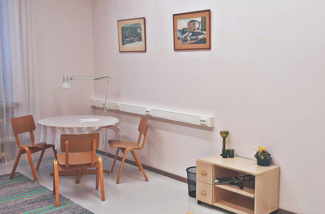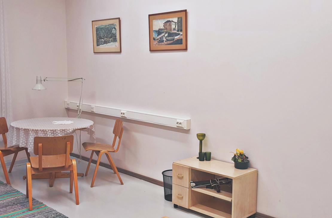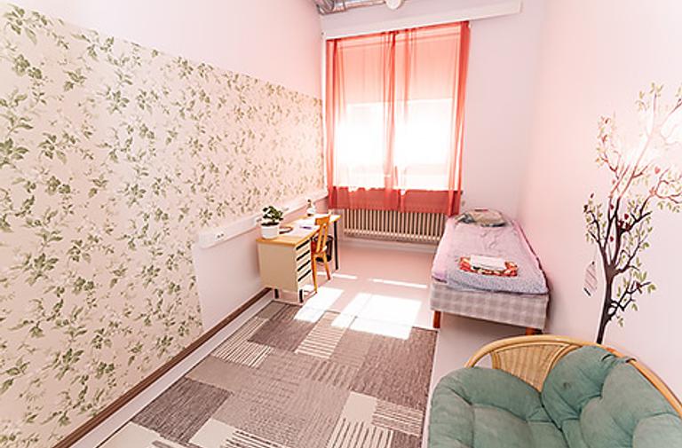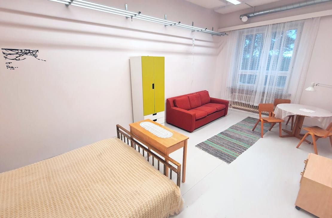 Perhehuone Liikka sopii tilanteessa, jossa aikuiset ja lapset voivat yöpyä samassa huoneessa. Käytössä on parisänky ja kaksi erillistä sänkyä ja tarvittaessa lastensänky.