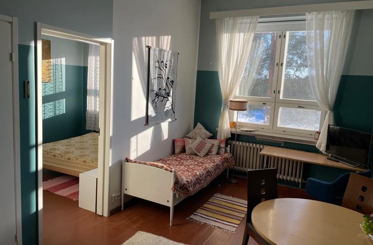 Pieni kaksio, jossa oma kylpyhuone ja oma rauha.